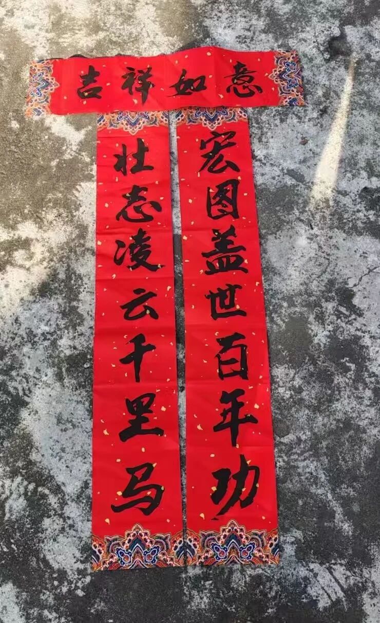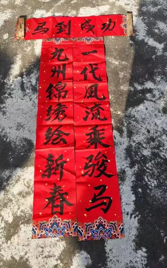 这两组春联紧扣2026丙午马年主题,以“马”为核心意象寄寓美好祈愿。第一组“一代风流乘骏马,九州锦绣绘新春”,寓意时代英才引领潮流、祖国大地繁荣昌盛,横批“马到成功”点明生肖并祝福开局顺利。第二组“宏图盖世百年功,壮志凌云千里马”,气势磅礴地表达民族复兴伟业与奋斗者如骏马奔腾的豪情,横批“吉祥如意”传递质朴祝福。