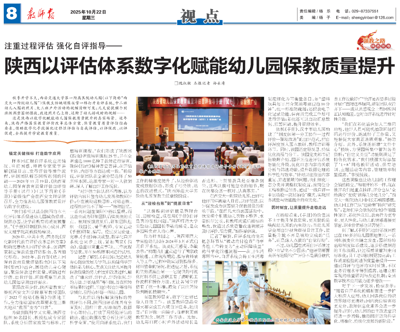 近日,《教师报》以《陕西以评估体系数字化赋能幼儿园保教质量提升》为题,专题报道了学前教育学院在推进幼儿园保教质量评估方面取得的显著成效。