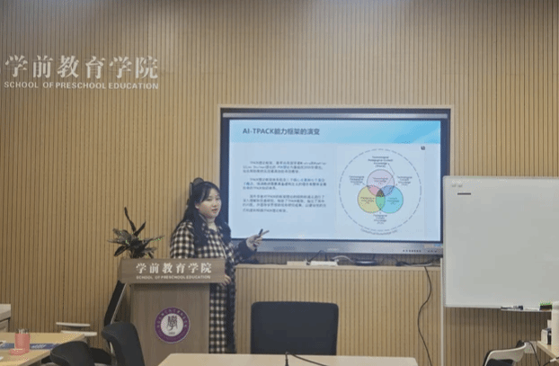 研究生们依次围绕人口结构、数字化教育、技术时代的师幼关系构建、教师情感与人工智能整合能力、教育空间及普惠政策等前沿议题进行了学术汇报。与会导师们进行了细致反馈,强调在关注技术、政策的同时,始终不能脱离“幼儿为本”的学科根基。在研究中注重“扎根现实、眺望未来”,寄语同学们在未来的研究中进一步拓宽理论视野、深化实证探索。在自由提问环节,同学们踊跃发言,与导师们展开了热烈讨论,现场学术气氛浓厚。