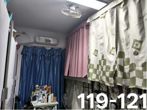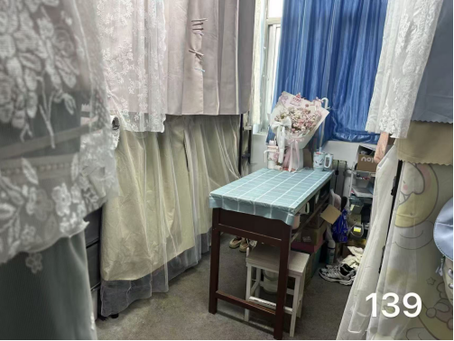 环境整洁:地面洁净无污渍,桌面物品摆放有序,床铺整理规范统一,衣物、洗漱用品分区明确,通风及时,营造出清爽雅致、舒适宜居的居住空间;