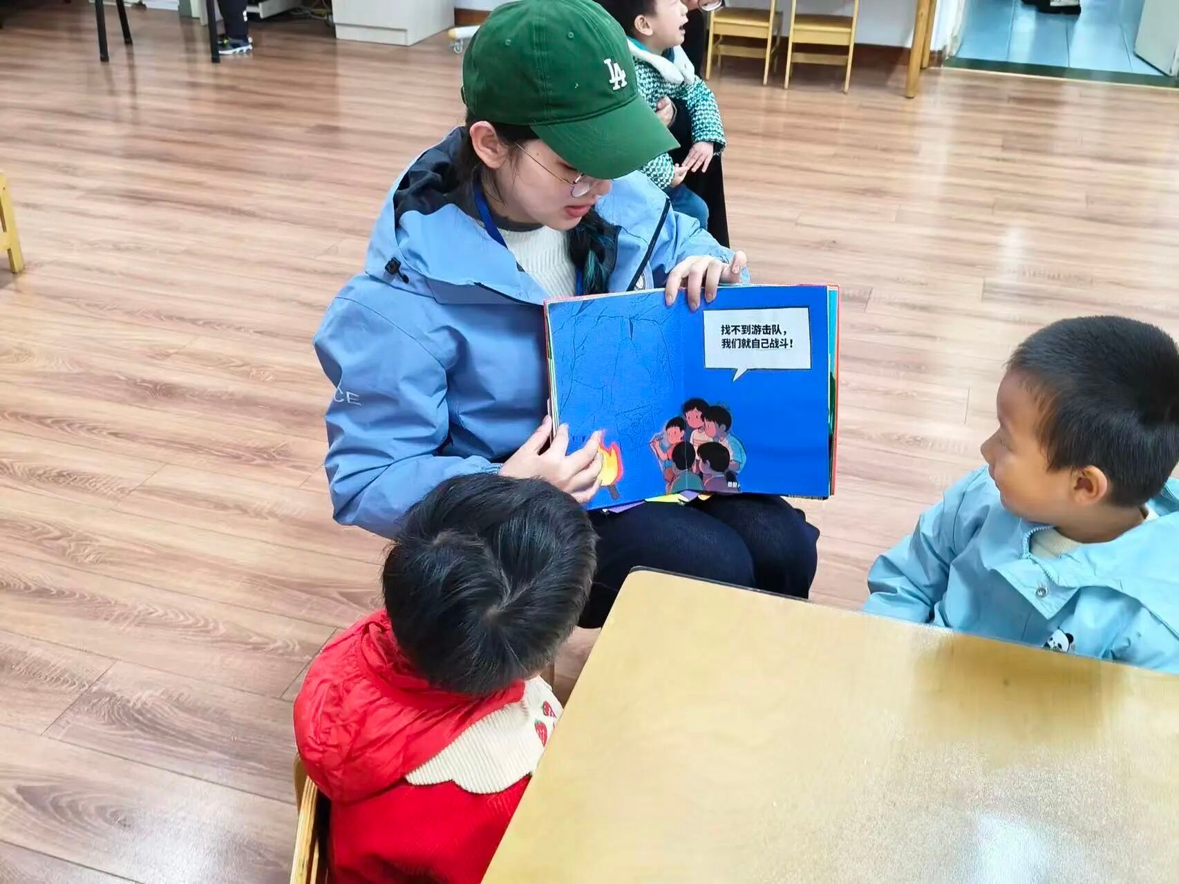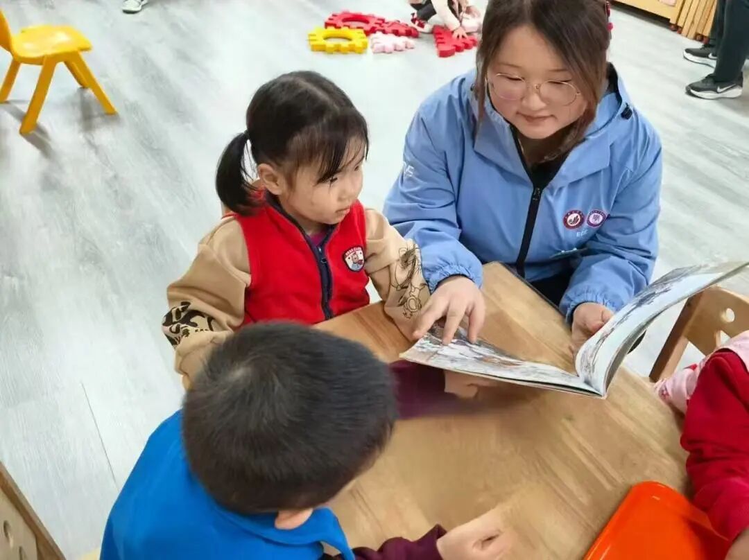 作为“红烛幼教”育人体系下的学生党员先锋队,队员们充分发挥专业优势,以“红烛领航”的姿态,结合幼儿认知特点设计宣讲环节:用夸张的语气增强故事感染力,用简单的动作辅助情景呈现,用趣味问答巩固核心认知,让红色教育既符合幼儿年龄特征,又兼具教育深度。从绘本画面的细节解读到故事情节的延伸思考,从革命精神的通俗阐释到爱国情感的自然流露,每一个环节都凝聚着队员们的用心,也让孩子们在沉浸式体验中感受到红色文化的魅力。