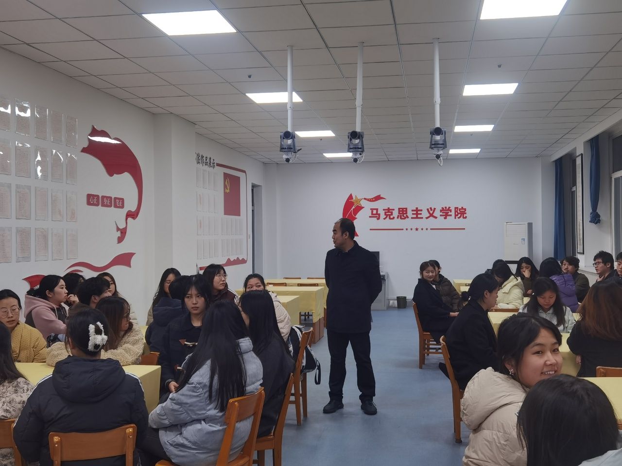 为贯彻落实学校34556立德树人体系,扎实推进学校“七个五”工作举措落地见效,助力毕业生高质量就业,11月20日晚,党委宣传部全体人员赴马克思主义学院,与2022级学生开展就业帮扶见面会。