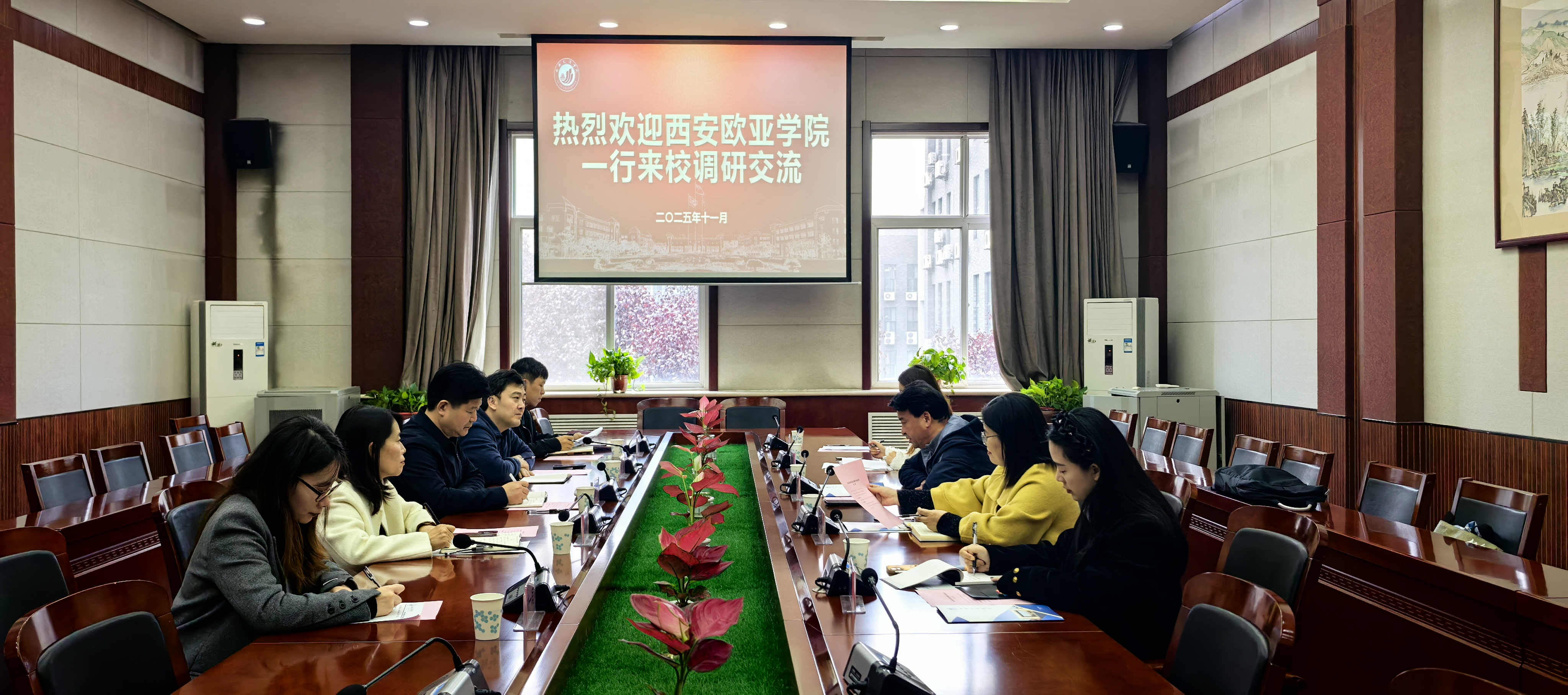 陈遇春就西安欧亚学院办学情况及未来学科建设的重点方向做了详细介绍。韦炜介绍了学校学科建设工作相关情况。与会人员就学校发展定位及重点学科内涵建设展开深入交流。双方一致表示,此次调研交流为两校搭建了良好的沟通平台,希望以此次调研为契机,在未来加强学习交流,携手共进。