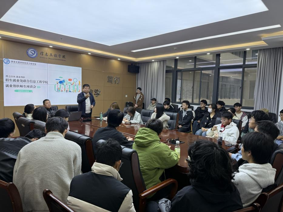 招生就业处联合信息工程学院践行“七个五”举措开展就业帮扶师生座谈会 为深入贯彻落实学校“七个五”育人举措,聚焦学生就业急难愁盼问题,搭建校企协同、师生联动的就业帮扶桥梁,2025年11月6日中午1:00招生就业处联合信息工程学院在行知楼S503会议室召开就业帮扶师生座谈会。 座谈会上,王向阳介绍了学院践行“七个五”举措的就业帮扶工作思路。他提到,学院始终将就业工作作为“立德树人”的重要落脚点,此座谈会,正是为了打通就业服务“最后一公里”,让学生在求职过程中“有方向、有资源、有底气”...