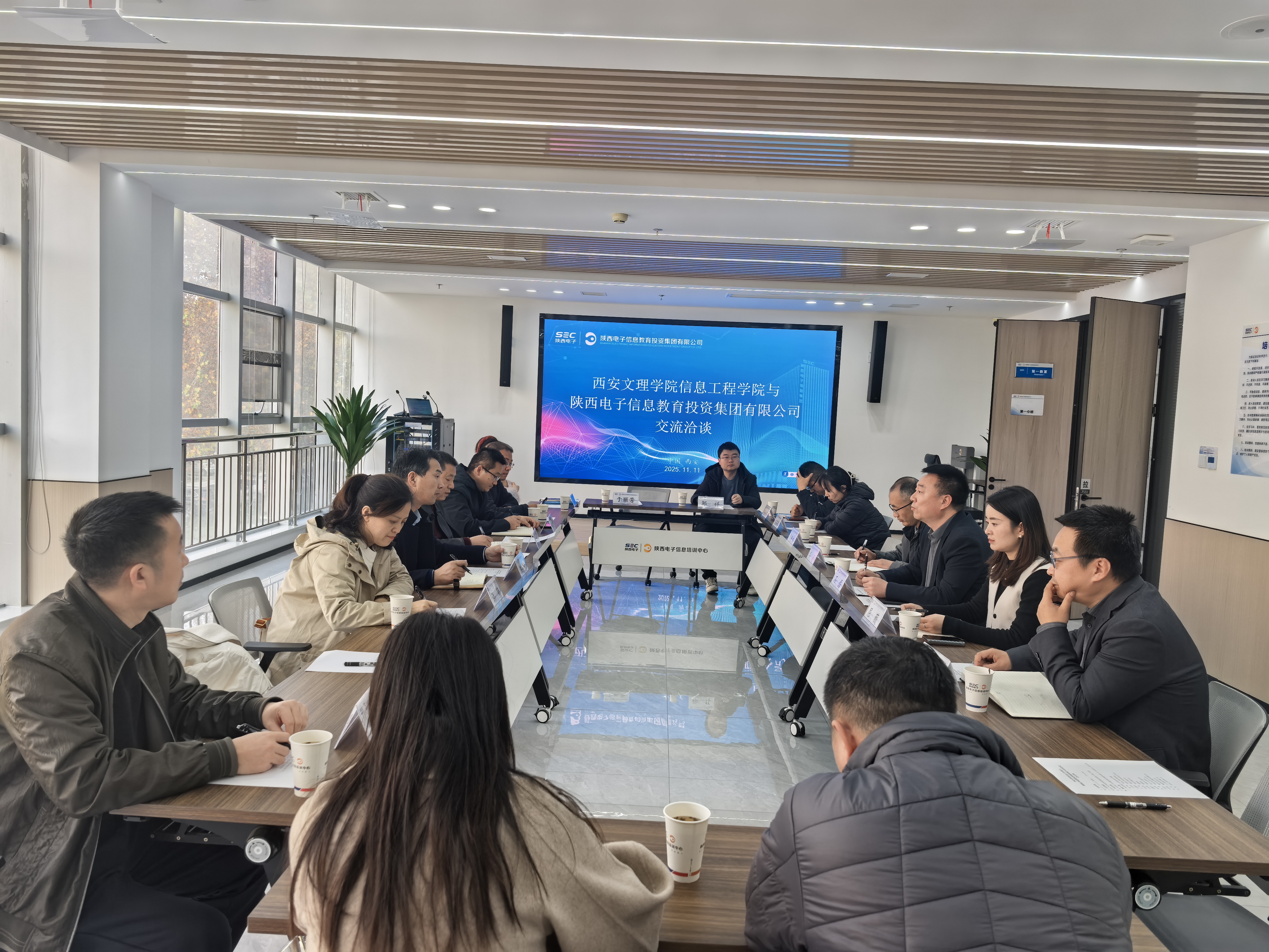 11月11日下午,信息工程学院一行赴陕西电子信息教育投资集团,开展党总支主题党日活动暨访企拓岗交流座谈活动。集团党委委员、副总经理石磊主持会议,双方相关负责人出席。