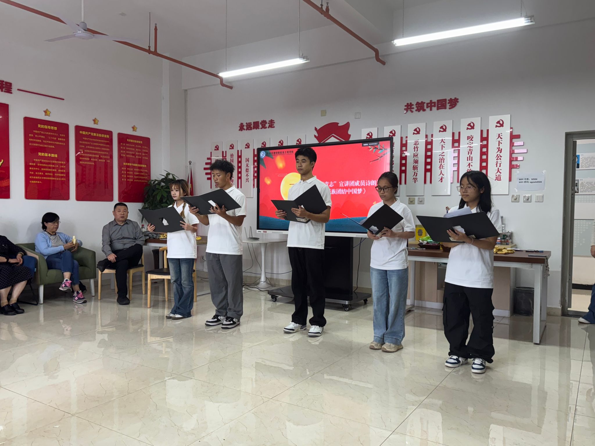 信息工程学院党总支书记王向阳致欢迎辞。他代表学院向莅临活动的各位领导与师生致以诚挚的中秋问候,强调此次茶话会既是“我与院长、书记面对面”系列活动的重要组成部分,更是搭建师生沟通桥梁、凝聚民族团结力量的生动实践,希望借助诗词与团圆的纽带,让师生在交流中感受文化魅力,在团聚中增强集体归属感。“薪德青志”宣讲团成员带来诗朗诵《民族团结中国梦》以铿锵有力的语调、饱含深情的演绎,生动诠释了各民族同心筑梦的磅礴力量,让在场师生深切感受到“中华民族一家亲”的深刻内涵;“时代青音” 合唱团成员献上的原创舞蹈《国旗下的石榴籽》则以用灵动的身姿演绎各族儿女在国旗下的团结奋进,象征各民族像石榴籽一样紧紧相拥。