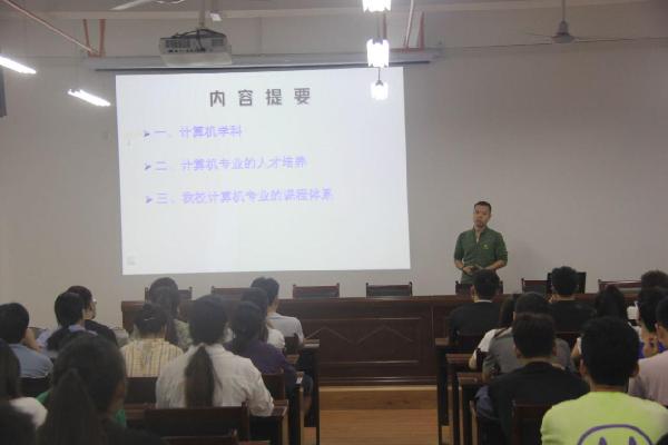 同时,计算机科学与技术专业教研室主任赵宁社老师结合当前形势下计算机科学与技术专业的就业前景和发展方向,详细讲解了本专业课程设置、人才培养计划、培养目标、师资力量、实验室配备等。讲述了计算机专业的相关内容、发展历程以及今后要学习的内容,使新生对本专业有较为清晰的认知,激发了新生学习的热情以及对未来工作的美好期望。