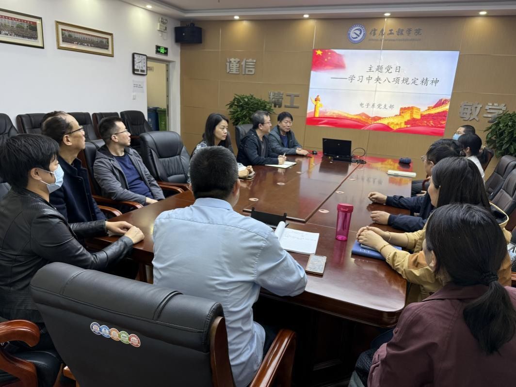2025年3月26日,电子系党支部开展“深入贯彻中央八项规定精神学习教育”主题党日活动,启动部署中央八项规定精神学习教育,支部全体党员参加。