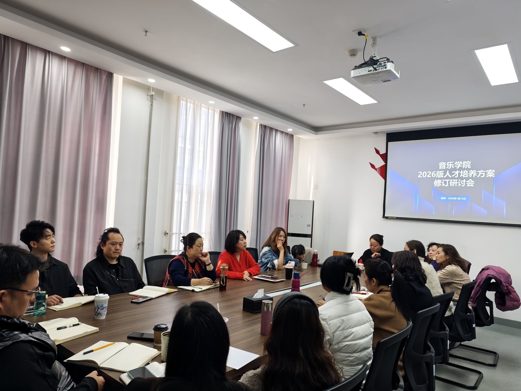 1月15日下午,音乐学院召开2026版人才培养方案修订研讨会,学院教学委员会成员、各专业负责人及骨干教师代表参会。会议由俞华处长主持。