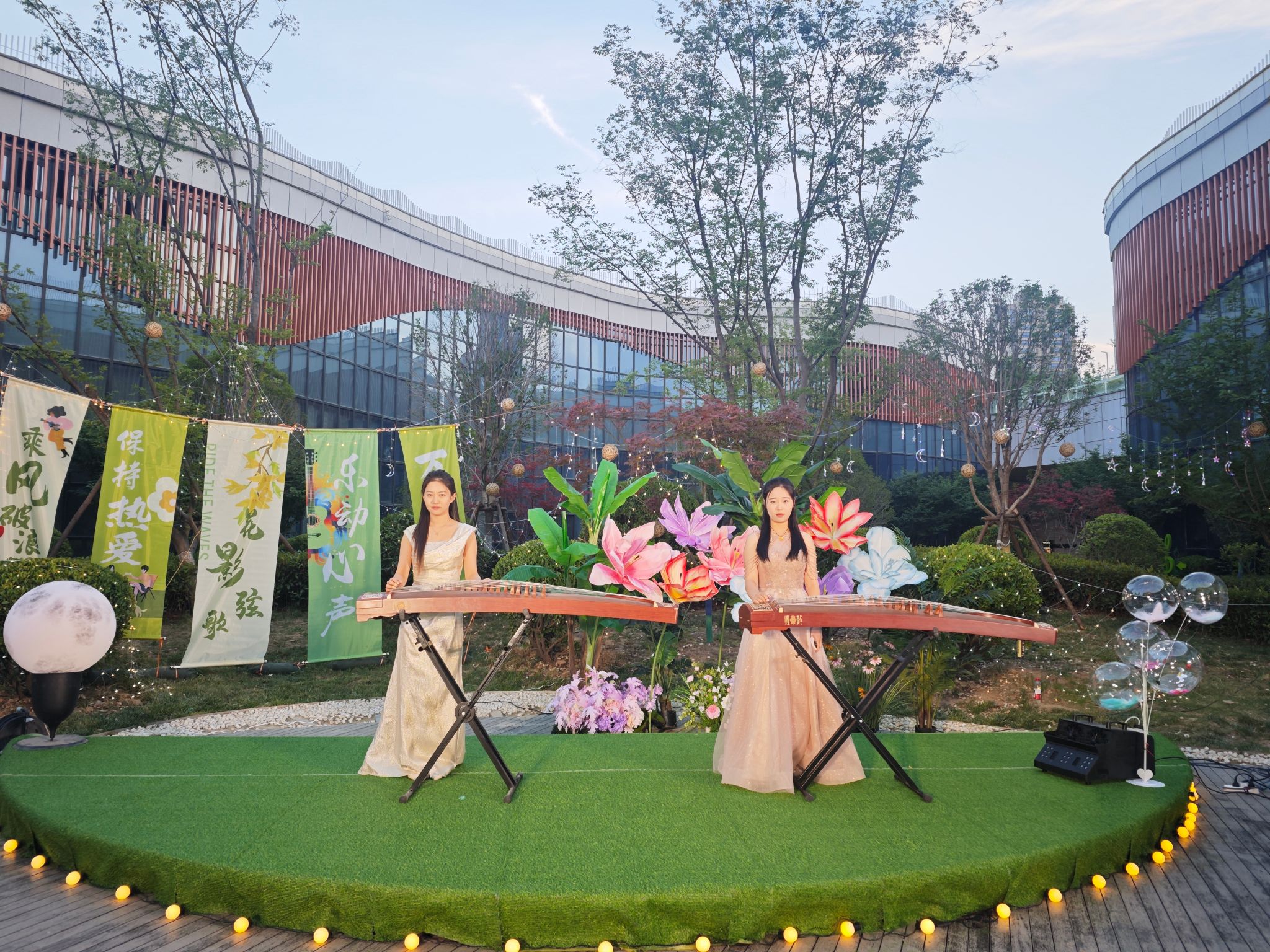 5月23日晚,西安市新城区文化馆下沉广场沉浸在一片诗意与乐声交织的氛围中——由新城区文化馆主办、西安文理学院音乐学院协办的 “花影弦歌・乐动心声” 花园音乐会首场演出在此圆满举行。标志着新城区文化馆服务宣传周系列活动的高潮时刻,也是我院音乐表演专业学生新城区实习工作的高光时刻。