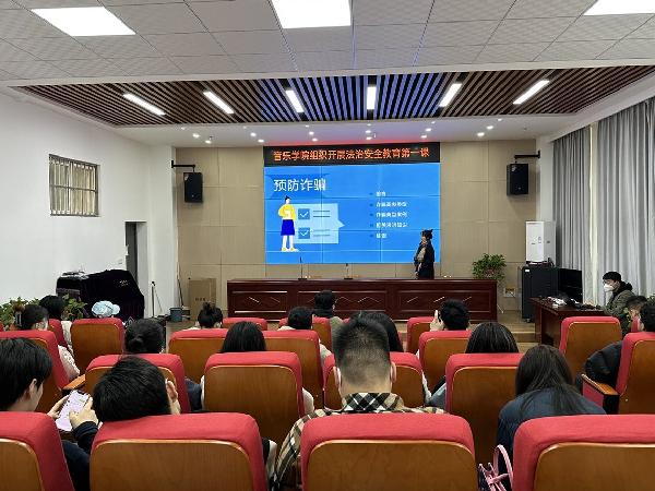 音乐学院全体学生于集体观看学习了《网络安全教育》视频,该视频强调了网络安全教育的重要性,指出当前电信诈骗猖獗的现象,总结了网络安全问题产生的根源,并通过日常生活中的诈骗实例,告诫同学们要增强防范意识、法律意识,正确使用网络,健康文明上网。手把手引导学生下载安装“国家反诈中心官方”APP,关注“国家反诈中心”政务号,告知同学们接到电话一定要及时接听,耐心听取劝阻,擦亮双眼避免上当受骗。