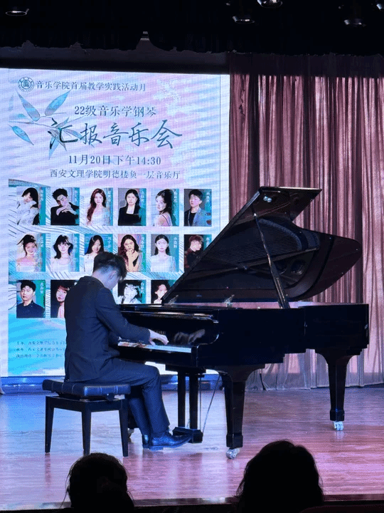 音乐表演系钢琴演奏专场展现了学生对经典曲目的深入理解与风格创新;音乐学系2022级钢琴主修生在汇报中体现了扎实的专业积累与系统培养成效,2023级钢琴主修生以练习曲和小型作品为主,反映出良好的基础教学水平;钢琴艺术指导专场则通过声乐伴奏的形式,突出协同演奏能力,彰显了复合型人才的培养特色。