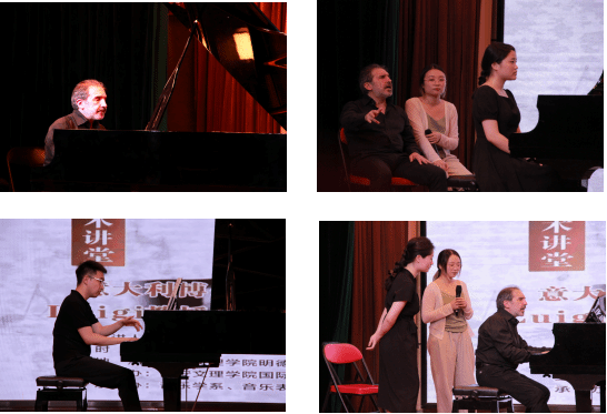 1995年⾄今,Luigi Mariani教授任教于多所意⼤利国⽴⾳乐学院,不仅拥有丰富的钢琴演奏经验,更在音乐教育领域有着深厚的造诣。在讲座中,Luigi Mariani教授现场进行了音乐作品的演奏,并结合自己多年的演奏与教学经验,为学院青年教师及钢琴专业的学生进行专业指导,从指法的运用、力度的控制,到音乐的情感表达,都进行了细致入微的讲解和示范。师生们纷纷表示,通过这次大师课的学习,他们对钢琴演奏有了更加深入的理解和认识,收获颇丰。