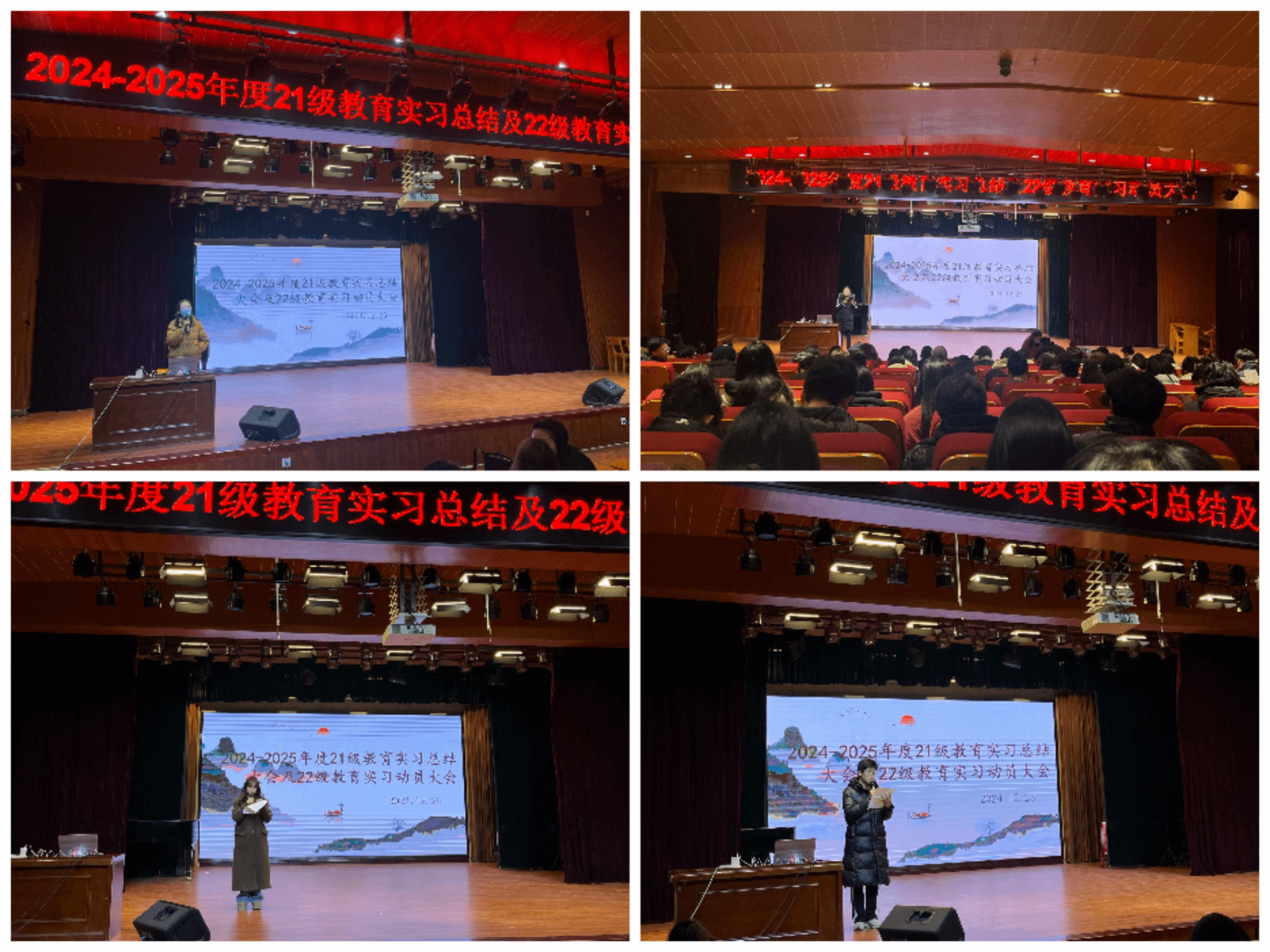 12月25日下午一点,西安文理学院音乐学院在负一层音乐厅召开“2024 - 2025 年度 21 级教育实习总结大会及 22 级教育实习动员大会”,学院领导、实习指教师与 21、22 级学生参与了此次大会。