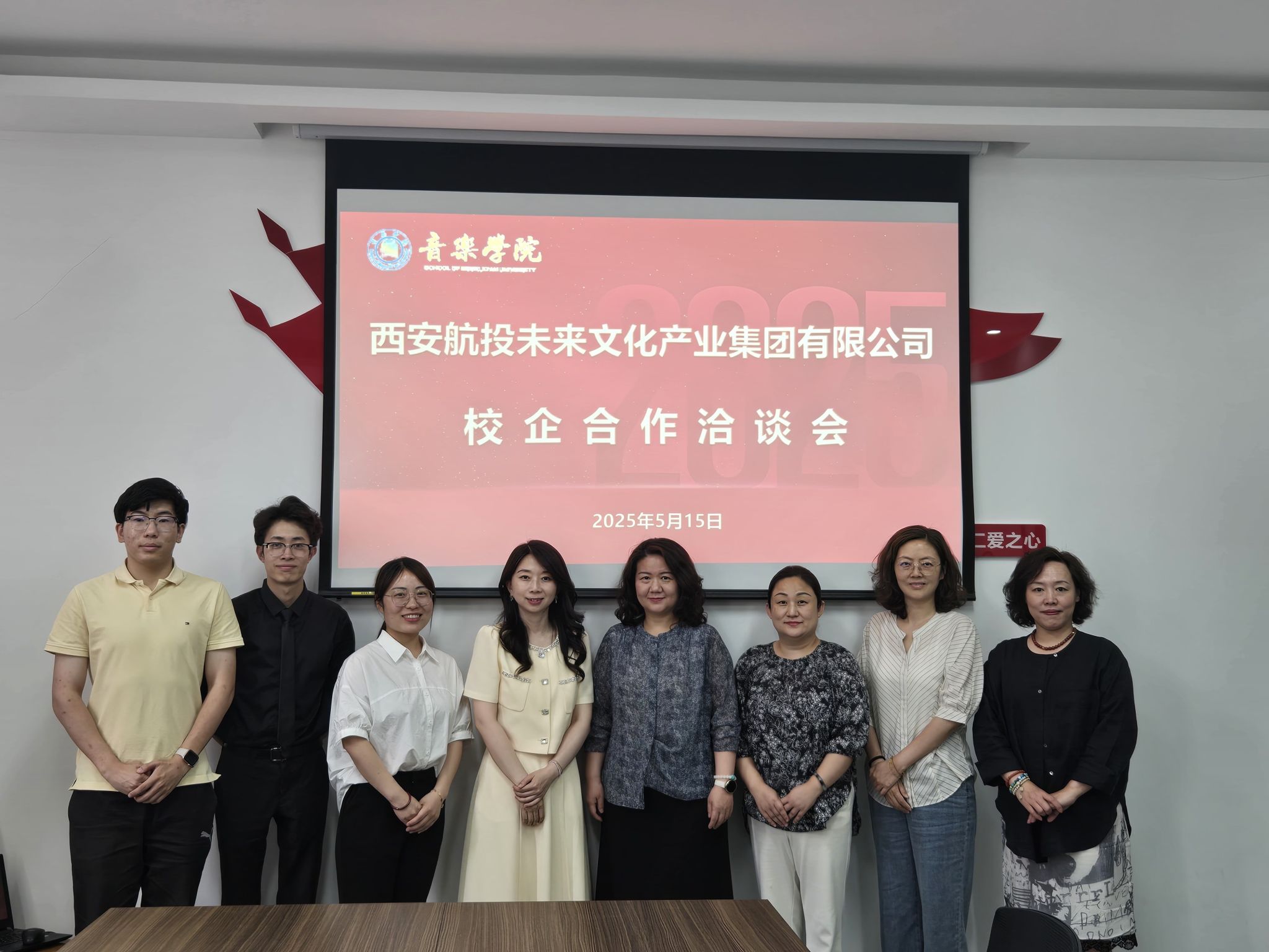 5月15日, 西安航投未来文化产业集团有限公司执行董事、总经理梁倩茹等一行来校座谈,音乐学院院长杨艺媛等相关人员参加座谈会。